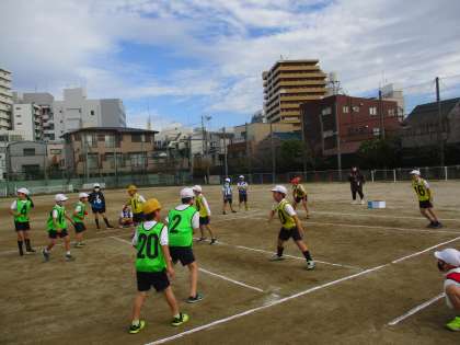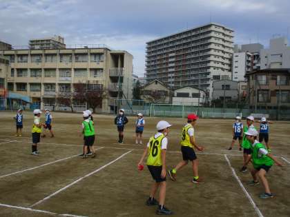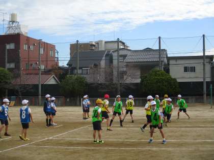3年生 体育 公開日 2022/12/05 更新日 2022/12/05 3年生 体育では「宝物運び」に取り組んでいました。玉入れの球を相手の守りをかいくぐって,ゴールにある箱に入れるゲームです。相手の動きを見たりチームで考えて相手を引き付ける役を決めて守りのゾーンを広げさせてりして,ゲームを楽しんでいました。作戦と機敏な動きが必要なゲームですね。