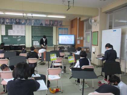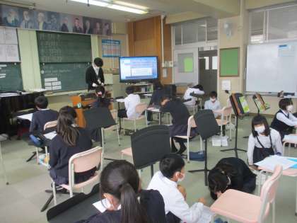 音楽では「待ちぼうけ」を習っていました。待ちぼうけの歌詞や音階を見て工夫しているところを読み取っていました,5・7調の歌詞がリズミカルであることや音階が上下していることなど気が付いたことをワークに書いて発表していました。日本の詩歌も習って,日本の伝統的な歌の良さも感じてほしいと思います。