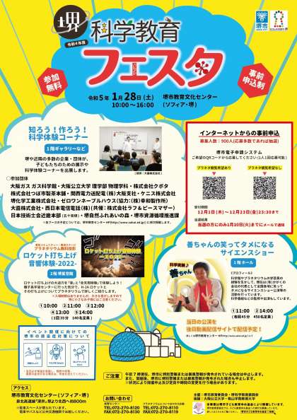 1月28日(土)「令和4年度堺科学教育フェスタ」が開催されます。