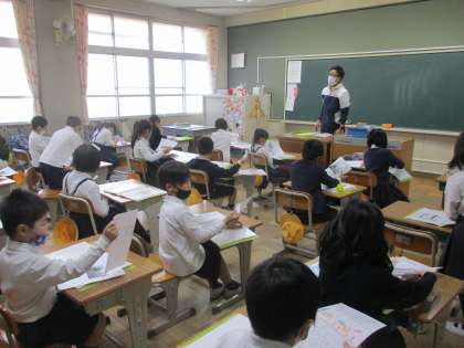 生活科で2学期に行った活動をファイルにまとめて,学習の振り返りを進めていました。写真や絵にかいた記録などを見て2学期の学習を思い出していました。