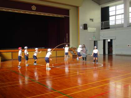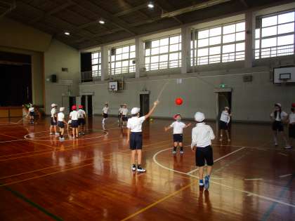 3年生 体育 公開日 2022/12/12 更新日 2022/12/12 3年生 体育では大縄跳びに取り組んでいました。今日は大縄を跳びながら,ボールを受けたり跳びながらお互いにボールを受け渡したりしながら跳ぶことと新たにめあてをもって運動していました。様々な運動をアレンジして体力づくりを進めていました。