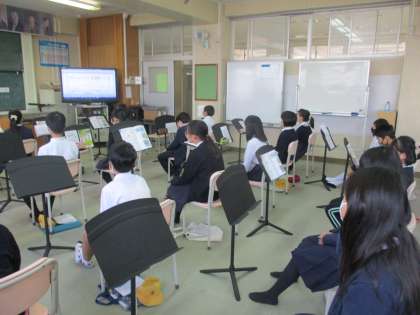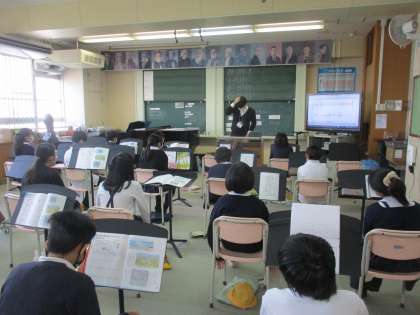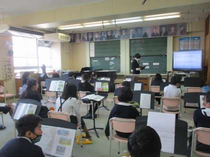 音楽では「冬げしき」を歌っていました。文部省唱歌で昔から歌い継がれている歌ですね。日本の穏やかな情景を目に浮かべて,スローなリズムで歌いあげることで,日本の歌の文化にも触れて,その良さを見つけてほしいと思います。