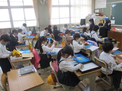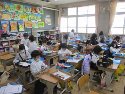 1年生 図工 公開日 2022/12/12 更新日 2022/12/12 1年生 図工では「どんぐり迷路を作ろう」の学習を進めていました。今日は持ってきた箱に迷路を書いて,そこに道をつけていました。迷路にストーリー性を持たせて,お話を楽しみながら進めていくことも考えていました。どんぐりの大きさに合わせることに気を付けながら,みんな熱心に取り組んでいました。