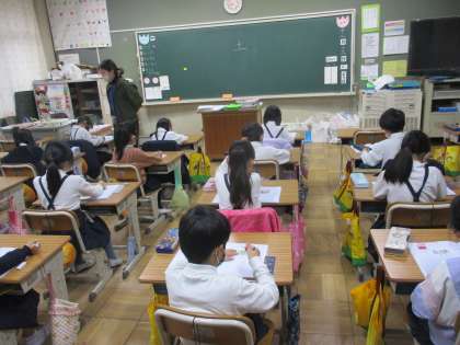 朝学習では漢字の学習を進めていました。今日は「土」を習って,ていねいに練習していました。