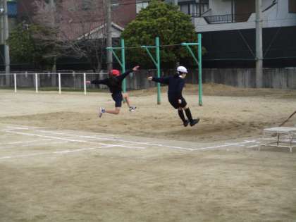 5年生 体育 公開日 2023/01/13 更新日 2023/01/13 5年生 走り幅跳びに取り組みました。踏切で力を出せるように,助走距離を自分なりに調整しながら,取り組んでいました。記録が伸びていくのが楽しみですね。