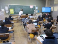 音楽では「こぐまの二月」をキーボードで演奏していました。楽譜の上の段と下の段を分けて演奏し,曲を奏でていました。ペースを合わせてきれいな音を出して進めていました。