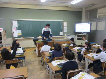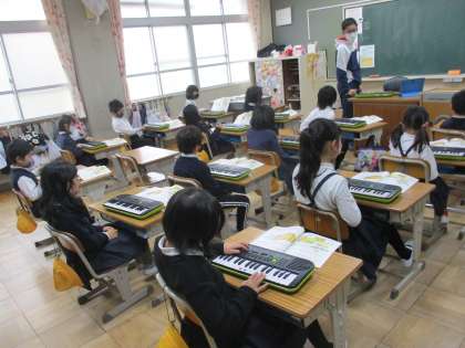 2年生 音楽 公開日 2023/01/16 更新日 2023/01/16 2年生 音楽では「こぐまの二月」をキーボードで演奏していました。楽譜の上の段と下の段を分けて演奏し,曲を奏でていました。ペースを合わせてきれいな音を出して進めていました。