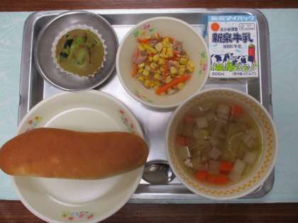 今日の給食は「冬野菜スープ,コーンソテー,黒豆抹茶ケーキ」でした。お正月に食べるおせち料理には意味があります。黒豆は,家族みんなが、「まめ(まじめ)に働いて元気に過ごせるように」という願いがこもっています。