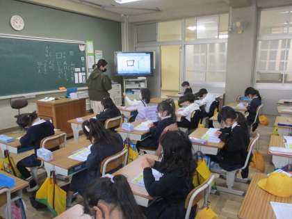 国語では漢字の「口」を習っていました。一筆書きのように書くのではなく,書き順に気を付けて書いてください。