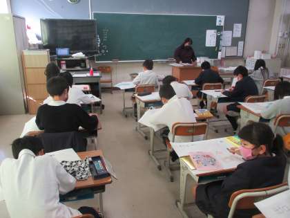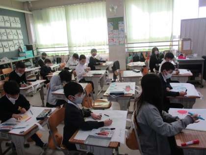 3年生 図工 公開日 2023/01/19 更新日 2023/01/19 3年生 図工では「作品袋」にイラストを描いていました。白地の生地に思い思いの絵をかいて,1年間の作品を整理する袋に思い出をいっぱい詰めてほしいと思います