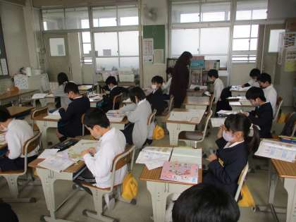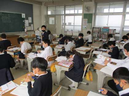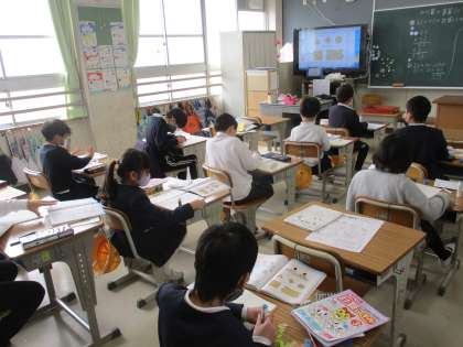 3年生 算数 公開日 2023/01/23 更新日 2023/01/23 5年生 算数では「三角形と角」の学習を進めていました。今日は正三角形を引き詰めてできる形を学んでいました。60度の角を利用すると,正方形ができたり面白い形ができたりします。実際にひき詰める形づくりを通して,三角形の特徴を理解していました。