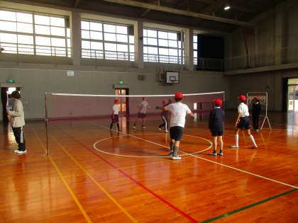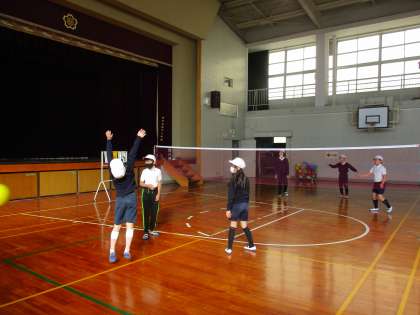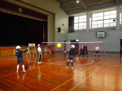 体育では「ソフトバレーボール」に取り組んでいました。やわらかいボールなので突き指の心配もなく,みんなのびのびとゲームを楽しんでいました。