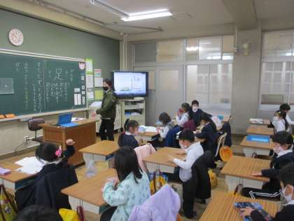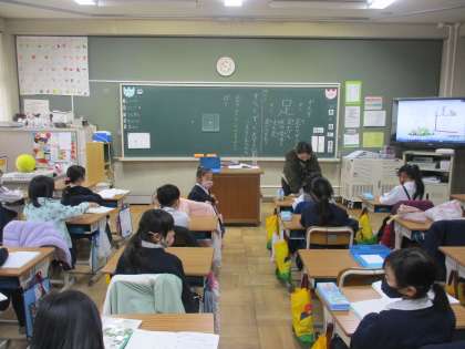 1年生 国語 公開日 2023/02/10 更新日 2023/02/10 1年生 国語では「ずうっと ずっと 大すきだよ」の学習を進めていました。今日は最初の時間で,これからの学習の進め方を学んでいました。年老いたペットの死を通して,身近な動物への愛情と死に正面から向き合う主人公のすがたを通して,感じたことを話し合っていきます。何度も読んで,物語の世界に入り込んでほしいですね。
