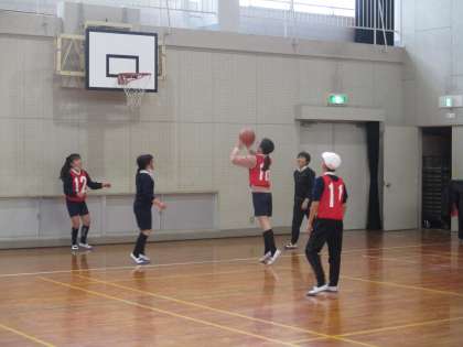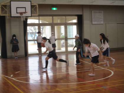 5年生 体育 公開日 2023/02/13 更新日 2023/02/13 5年生 体育では「バスケットボール」の学習を進めていました。今日は3対3のゲーム行い,ゲームの中の動きや相手の動きを見ながらのパスの出し方,シュートする最適な位置などを考えていました。3対3なので動きも活発になり,運動量の豊富な授業でした。