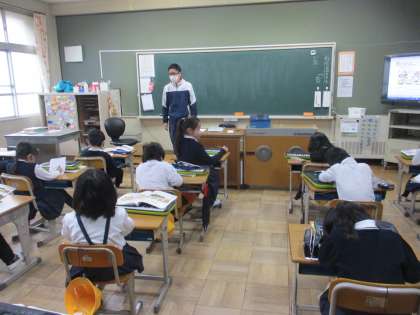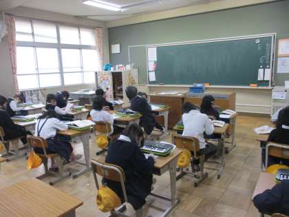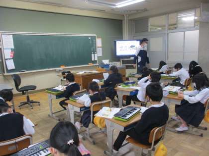 音楽では鑑賞の学習を進めていました。教科書の「エンターテイナー」を「合奏の楽しさ」を感じながら鑑賞していました。大人も聞きなれた曲で,一人一人が自分の感じたことをワークシートに書いていました。軽快なリズムでの中でどんな楽器が使われていたかを聴き取っていました。