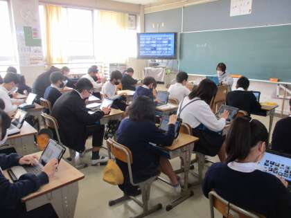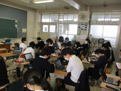 社会科では「新しい日本への歩み」の学習を進めていました。今日は「経済の発展と人々の暮らしの変化」について学んでいました。当時の家電三種の神器「テレビ,洗濯機,冷蔵庫」について調べていました。当時の家電製品の写真をタブレットを使って検索して説明の資料にしていました。あと10年すれば,今使っている製品も進歩して私たちの生活様式も変わっているでしょうね。