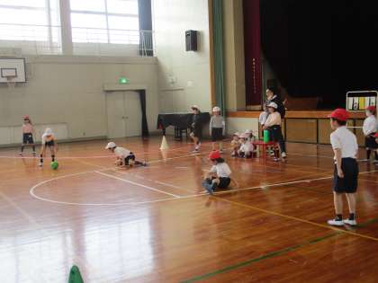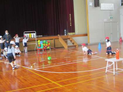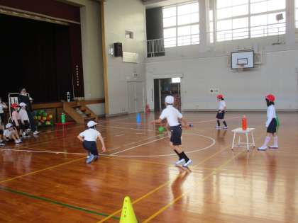 2年生 体育 公開日 2023/02/15 更新日 2023/02/15 2年生 体育では「ハンドサッカー」に取り組んでいました。今日はコートのセンターを紐で明確にして,手でボールを打ち合っていました。相手の守備の隙間を探して,強いボールを打ってい楽しんでいました。