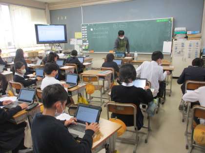 5年生 算数 公開日 2023/02/16 更新日 2023/02/16 5年生 算数では「割合をグラフに表そう」の学習を進めていました。今日はタブレットの入っている「表計算ソフト」を使って,いろいろなデータが載った資料を参考にして,グラフづくりを進めていました。グラフは機械が行いますが,数値の代入は人の力が必要なので,入力ミスのないように打ち込んでください。