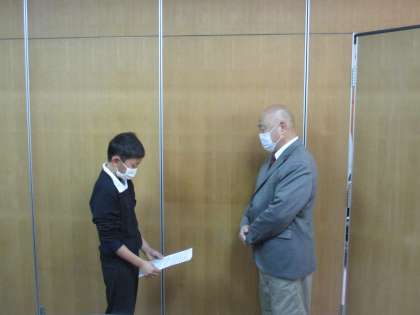 朝の時間に見守り隊の方々への感謝の会を行いました。感謝の会では,見守り隊の代表の方に,子どもたちか書いたお礼のメッセージをお渡ししました。登下校の忙しい,寒い時間に子どもたちの安全を確保していただきありがとうございます。代表の方からは「挨拶の大切さ」についてお話をいただき,学校でも地域に「あいさつ」があふれる街にしていくように指導を続けていきたいと思います。今後とも,見守り活動へのご理解・ご協力をお願いいたします。