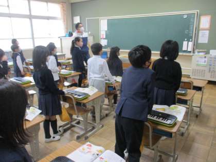音楽では2学期に習った歌を歌っていました。歌い方の注意を思い出しながら,2学期の学習を振り返っていました。