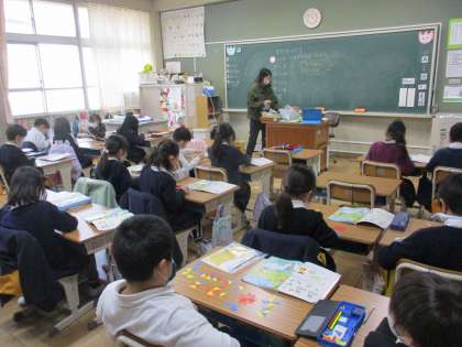 1年生 算数 公開日 2023/02/20 更新日 2023/02/20 1年生 算数では「形づくり」の学習を進めていました。今日は教科書から切り取った,たくさんの三角形を「重ねてつなげない」ことをルールにして,まず,教科書のサンプルの形を作っていました。三角形もつなぎ方によっては長方形や正方形などの四角形がつくられますね。かたちづくりの遊びを通して,いろいろなことに気が付いてくれればと思います。