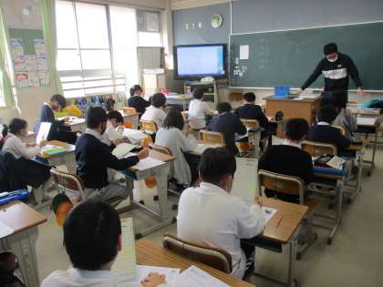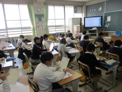 3年生 国語 公開日 2023/02/21 更新日 2023/02/21 3年生 国語では「ローマ字」の学習プリントに取り組んでいました。日頃あまり使わない文字ですが,タブレットの入力などでは,ひらがな入力より文字数が少ないので便利ですね。記号の組み合わせの考え方でしっかりと覚えてほしいと思います。