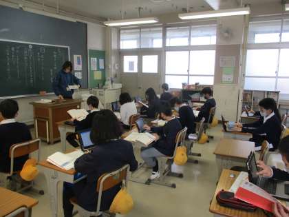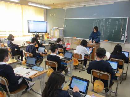 4年生 国語 公開日 2023/02/21 更新日 2023/02/21 4年生 国語では「初雪のふる日」の学習をすすめていました。今日は「石けりをしている女の子の様子を読み取ろう」をめあてにして,読み取った自分の考えをタブレットに入力して,みんなで共有できるようにしていました。自分の考えを見せ合うことができるので,学習が効率的に進められますね。