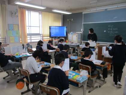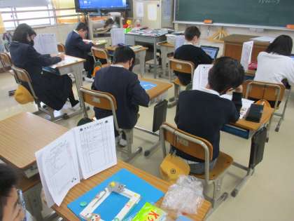 図工では「写真立て」の制作を進めていました。社会科のテストが終わった後、フレームに紙粘土で飾りをつける工程を進めていました。オリジナルの写真立てができて、部屋の装飾にも一役かいそうですね。