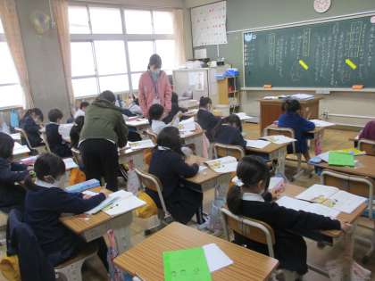 1年生 国語 公開日 2023/03/02 更新日 2023/03/02 1年生 国語では「いい こと いっぱい、 一年生」、の学習を進めていました。書くことをめあてにした学習です。一年間を思い出して思い出に残った「いいこと」を文章にして、ノートに書いていました。相手に伝わるように出来事をわかりやすく書いていました。