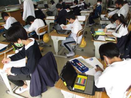 3年生 図工 公開日 2023/03/03 更新日 2023/03/03 3年生 「教室から見える風景」に取り組みました。自分がいいなと思った風景を写真に撮り、それを見ながら、絵を描いていました。細かなところまでじっくり見て取り組んでいました。