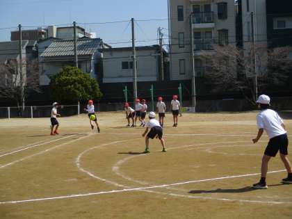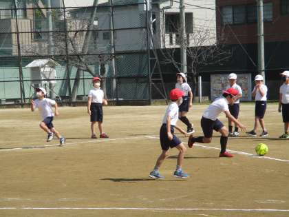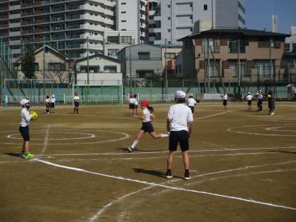 3年生 体育 公開日 2023/03/07 更新日 2023/03/07 3年生 体育では「キックべースボール」に取り組んでいました。今日は2チームに分けて三角ベースでゲームを楽しんでいました。ける方向や強さなどを考えて、ゲームの楽しさが高まっていました。