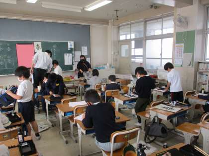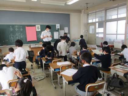3年生 書写 公開日 2023/03/08 更新日 2023/03/08 3年生 書写では「春」を課題にして、毛筆で取り組んでいました。今日は「半紙の真ん中に大きく書こう」をめあてにしてのびのびと書いていました。暖かい気候が続き、まさに今の季節にマッチした課題でした。