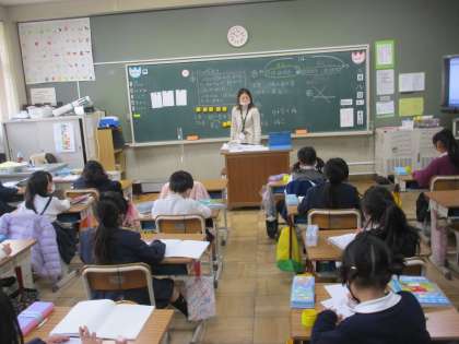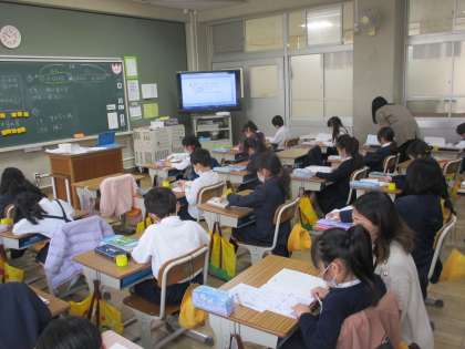 算数では学年のまとめを行っていました。プリントを使って、文章題や図形の問題を進めていました。みんな問題を解くことに意欲的で、熱心に取り組んでいました。