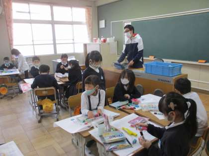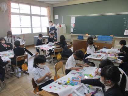 2年生 図工 公開日 2023/03/14 更新日 2023/03/14 2年生 図工では「作品バック」のデザインを進めていました。白地のバックに思い思いの絵を描いてオリジナルバックをつくっていました。世界で一つのマイバックを作って、作品を大切に持って帰ってください。