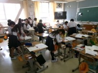 今日は「どんな新聞を作るかをグループで話し合おう」というめあてで、新聞づくりに取り組みました。新聞名や記事のテーマについてグループで考えていました。