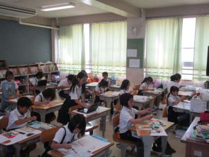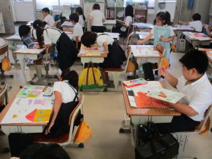 今日は「将来の自分の姿」を絵具で塗りました。完成が楽しみですね。
