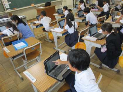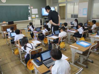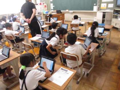 今日は義務教育基本調査にタブレットを使って回答しました。子どもたちは先生の話を聞きながらスムーズに活動できました。