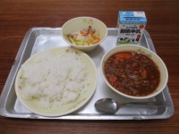 今日の給食のメニューは、ごはん、ハヤシライス(ごはんにかけてたべます)、ポテトサ...