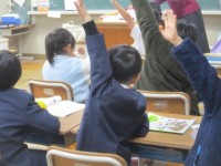 国語の教科書の「たぬきの糸車」を学習しました。実際に糸車を回す役、それを見ている...