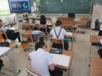 教科書の「ちいちゃんのかげおくり」を声を出して読んでいました。会話文は子どもたち...