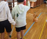 体育館での授業です。跳び箱と縄跳びをしていました。跳び箱は着地の時に足をそろえる...