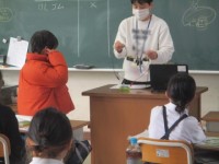 どんなものが電気を通すのか、の授業でした。先生が作った回路に、電池をセットして、...