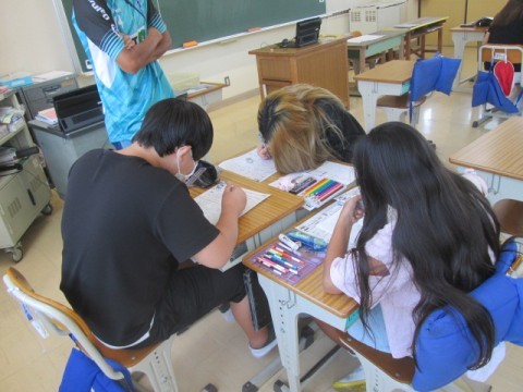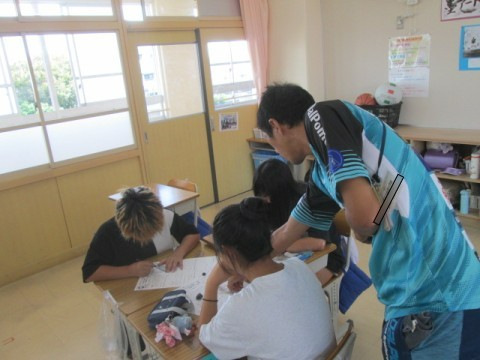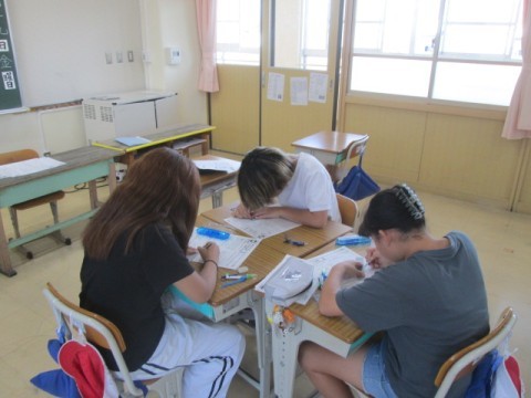 グループで互いに聞き合いながら練習問題に取り組んでいました。