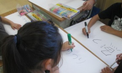 みんなで協力しながらお店の看板などを作成していました。