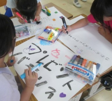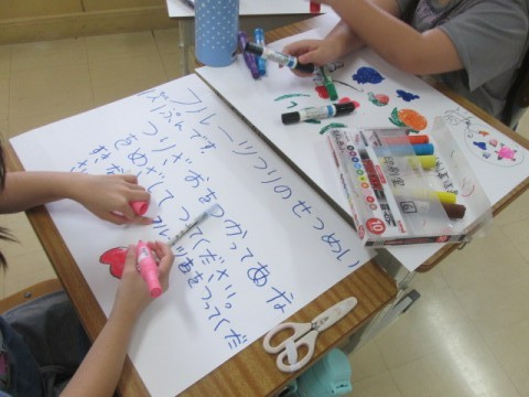 「西の子まつり」で使用する看板づくりの続きを行っていました。
