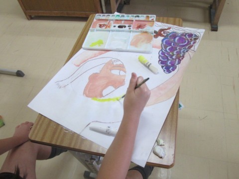 ぶどう狩りの絵の続きを行っていました。