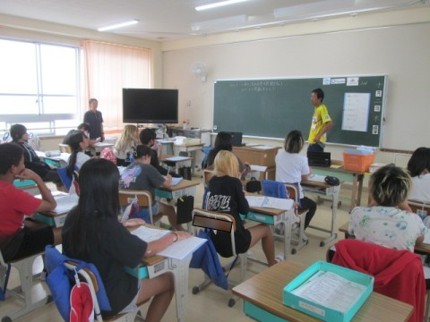 一日の生活の流れについて、英語を使って紹介する学習を行っていました。