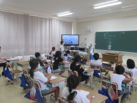 それぞれの考えをテレビを使って発表していました。
