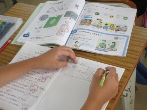 「ヒトの誕生」の学習で学んだことをノートにまとめていました。