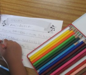 10月28日に連合音楽会を予定している5年生に向けて、応援のお手紙を書いていました。
